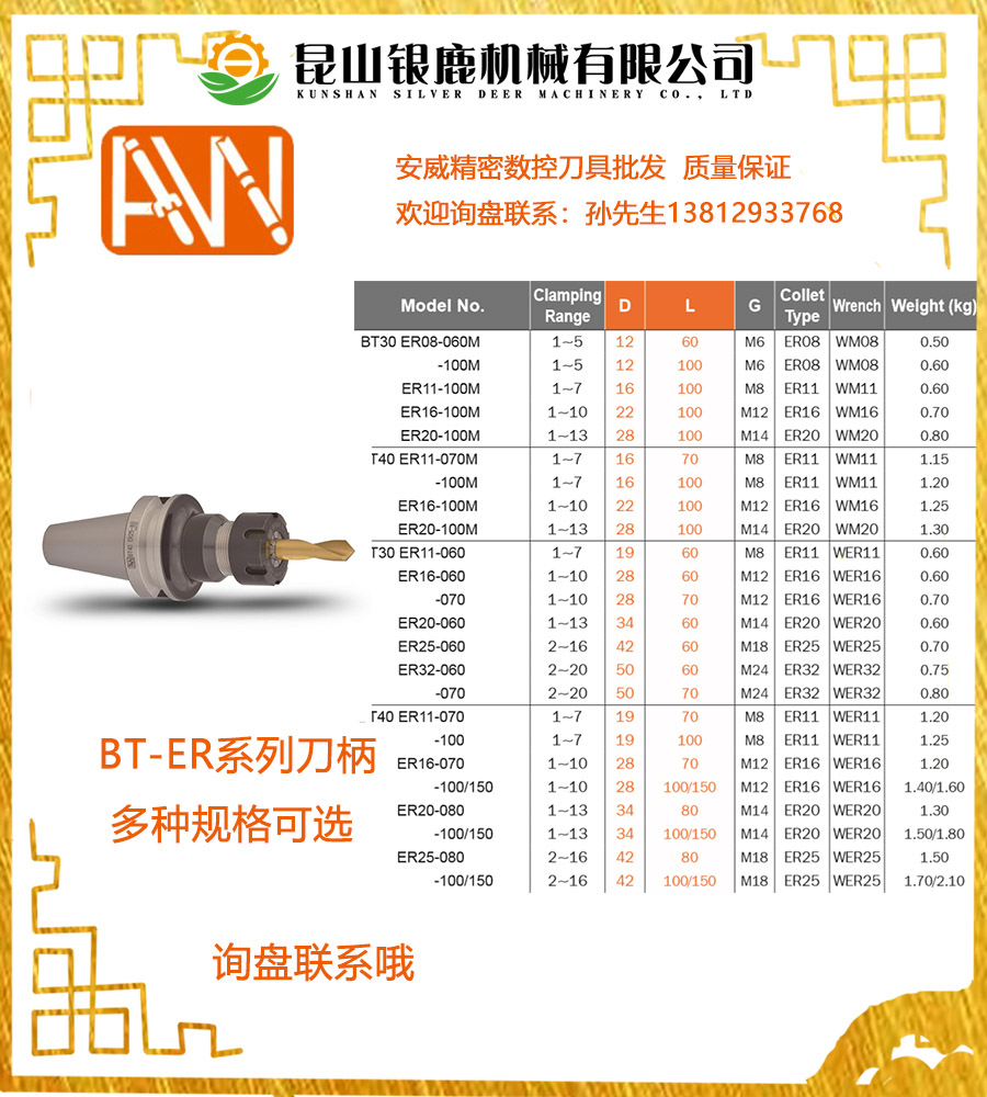 臺(tái)灣安威BT30/40-ER25-60/80/100加工中心刀柄優(yōu)質(zhì)代理