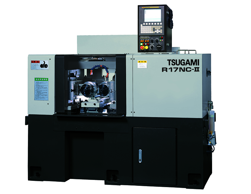 日本津上R17NC-II數(shù)控滾絲機,機床剛性好,綜合設(shè)計滾輪及自動送料裝置,利用數(shù)控尾頂,一次裝夾內(nèi)可同時加工2段滾花和1段蝸桿,在自動化及復合加工中可提高加工效率。左右主軸通過各自獨立的電機驅(qū)動,同步控制消除齒間偏差以達到高精滾壓;非液壓式、所以溫度變化對加工精度的影響??;裝備左右主軸的平行度調(diào)整機構(gòu);滾輪的齒距調(diào)整利用NC輸入數(shù)值來控制;加工條件和尺寸修正的數(shù)據(jù)用NC保存、重復再現(xiàn)簡單;CNC可控制標準3軸、選配2軸、共5軸;標配電磁分離器,切屑處理更簡單;滾珠絲桿自動供油潤滑;A型(標準):數(shù)控頂尖(選配)可進行有相位關(guān)系的加工;電動式壓入滾壓裝置、價廉省空間的自動供料裝置、自由定位的自動頂針等豐富的選項裝置;R16A的滾輪、工件支持裝置都可安裝和使用。B型(追加B型用部品)非常適合高精度工件的貫通式滾壓;R16B的滾輪和工件支持裝置都可安裝和使用;左右裝置傾斜角的微調(diào)可利用數(shù)字指示器。