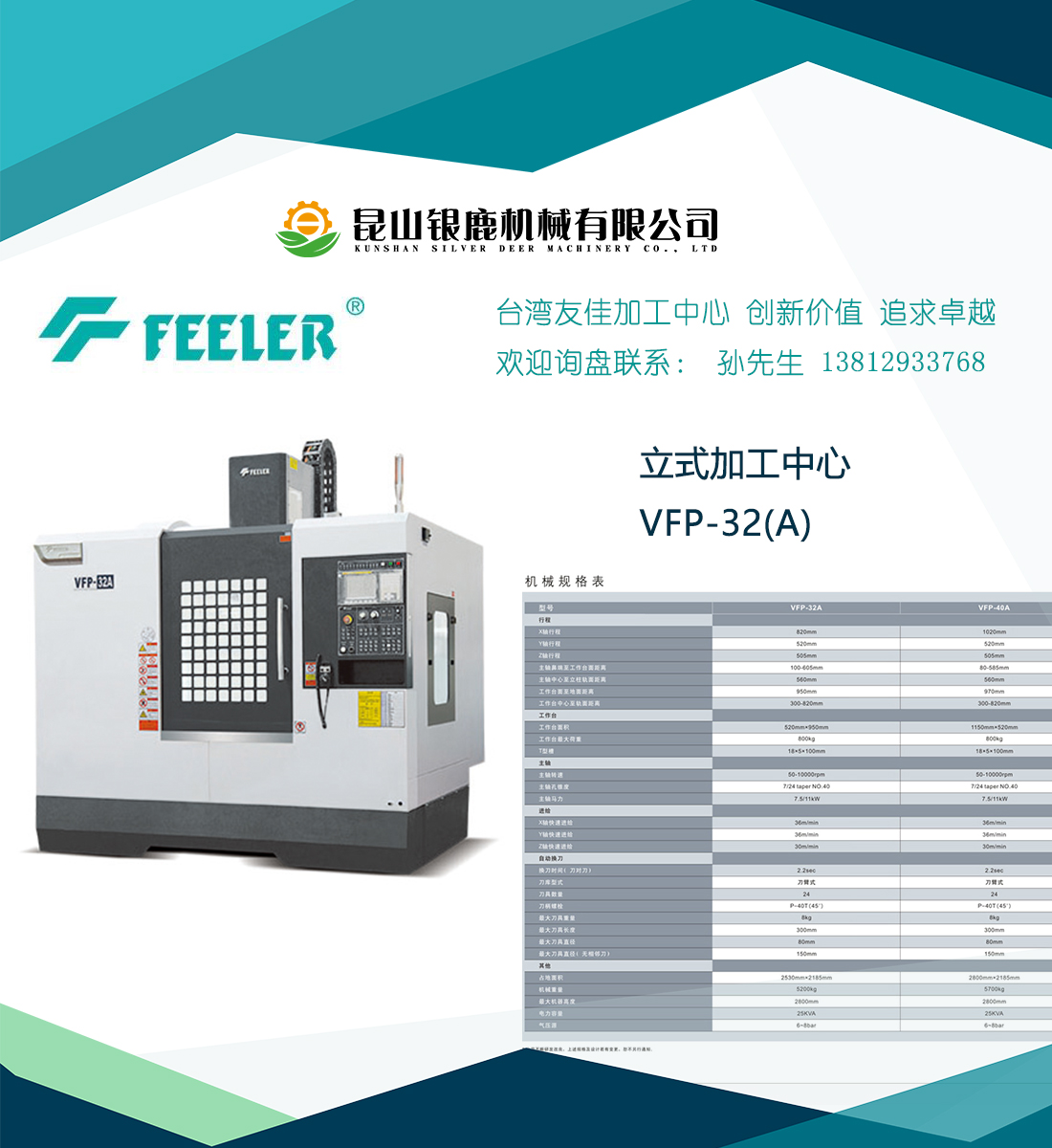 友嘉VFP-40A2線1硬1米立加一級(jí)代理。臺(tái)灣友嘉VFP-40A立加在老款基礎(chǔ)上進(jìn)行了升級(jí)、立柱加大加寬為A字結(jié)構(gòu)、同時(shí)保持發(fā)那科a電機(jī)使用、搭配1包系統(tǒng)、在力道上以及拐角加工中能夠獲得比較好的加工效果。X、Y軸采用線軌,Z軸為硬軌,中和了剛性和速度,專業(yè)的技術(shù)設(shè)計(jì)保證了,長時(shí)間使用主軸頭不會(huì)變形彎曲。主軸采用浮動(dòng)打刀設(shè)計(jì),保護(hù)主軸換刀不受沖擊、延長了主軸軸承使用壽命及保障了主軸精度!在一般產(chǎn)品加工中可以獲得較好的加工效果。如果選配升級(jí)安裝模具包,亦可進(jìn)行模具高速高精加工。是一款綜合性能比較好的加工中心。故障率低、使用皮實(shí)可靠!圖片外形和VFP-32A幾乎一致、僅供參考!如果需要可以預(yù)約工廠現(xiàn)場(chǎng)看設(shè)備。