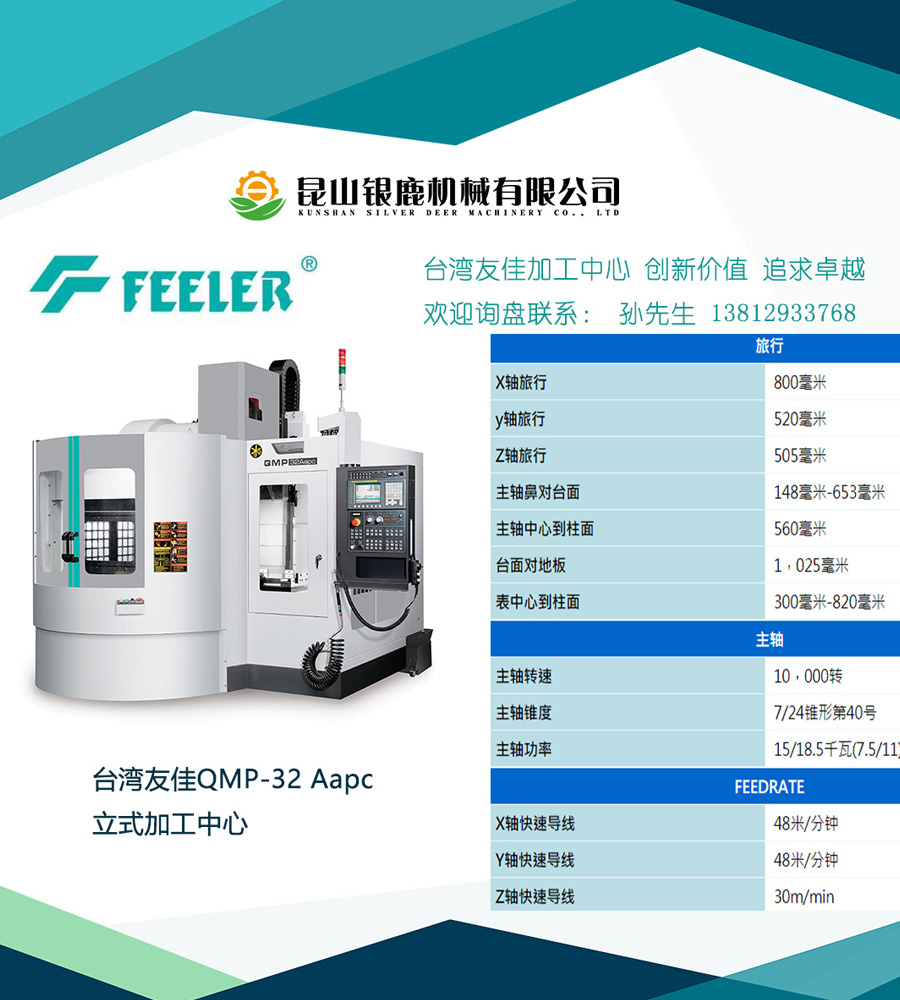 臺(tái)灣友嘉QMP-23A-APC雙交換工作臺(tái)立加、適用于大批量產(chǎn)品長期訂單加工、減少了裝夾等待時(shí)間、提高了機(jī)器設(shè)備的稼動(dòng)率。三軸行程580*420*510mm,BT40主軸、主軸轉(zhuǎn)速10000rpm;搭配20刀位刀臂式刀庫。